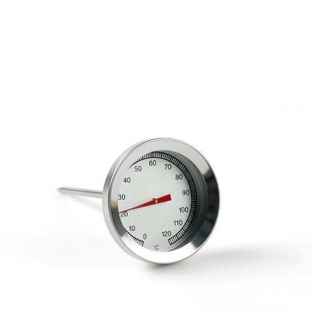 - Nulstil til kogepunkt: Anbring termometeret i kogende vand. Det burde vise 100°C. Hvis det ikke gør, skal termometeret justeres i henhold til producentens anvisninger.